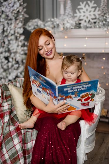 Classic Christmas Photoshoot – A timeless holiday atmosphere in shades of red, burgundy, green, white, and gray, with optional accents of gold, silver, or soft pastels. You may choose two outfit styles: Dressy/Elegant, Casual/Relaxed, or Cozy/Pajama.