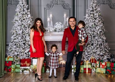 Classic Christmas Photoshoot – A timeless holiday atmosphere in shades of red, burgundy, green, white, and gray, with optional accents of gold, silver, or soft pastels. You may choose one outfit style: Dressy/Elegant, Casual/Relaxed, or Cozy/Pajama.
